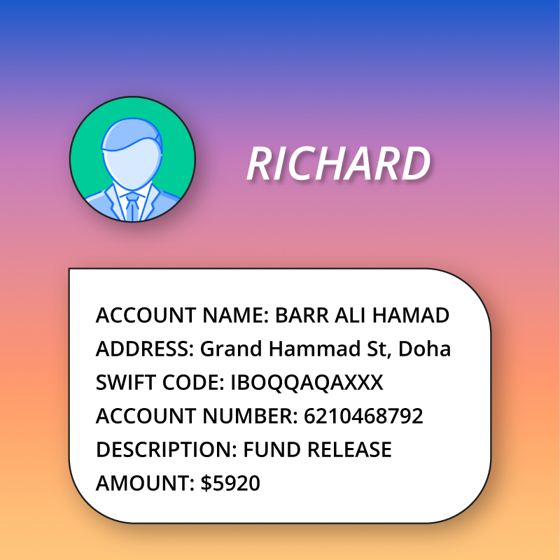But the meeting never happened. Instead, Richard, who said he worked as a project manager in construction, had to travel to Qatar to collect a “$10 million payout” from a job completed during Covid. “At this point we were unofficially engaged,” says Hyland. So, when Richard asked her to log into his bank account and transfer some money for him, she complied, flattered by his trust.